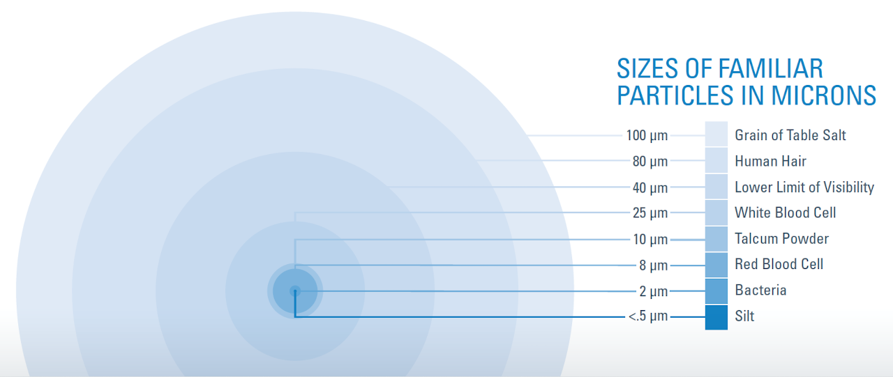 - Das menschliche Auge kann Partikel bis zu einer Größe von 40 Mikrometern erkennen.