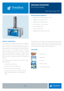 The Donaldson Filter Test Center (FTCi) serves to determine the filter efficiency of sterile and ventilation filters. It contains all the required components to perform an easy and safe test of filter elements and has room in every lab due to its compact structure.