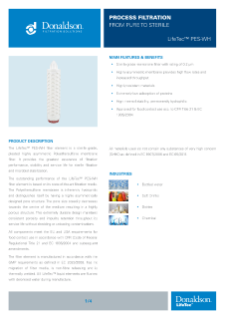 The LifeTec™ PES-WH filter element is a sterile-grade, pleated, highly asymmetric Polyethersulfone (PES) membrane filter for sterile filtration and microbial stabilization. Its hydrophilic PES membrane features a highly asymmetric pore structure with pore size that decreases toward the center, creating a highly porous medium that maintains consistent porosity and impurity retention throughout service life without shedding or unloading contaminants.