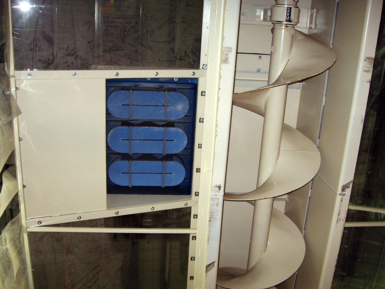 The original design intent included three central dust collectors (one collector located outside each of the storage compartments). However a Donaldson Torit dealer proposed a more effective solution. The dealer suggested it would be better to use an integrated solution installing five Donaldson Torit Dalamatic Insertable collectors on the roof of each storage compartment. The fans attached to each Insertable now draw dusty air through the filters. Although both solutions required a displacement of 20,000 cubic feet per minute of air per storage compartment, less static pressure is required with the integrated Dalamatic Insertable solution because all duct losses were eliminated. This resulted in an electrical savings of over $18,000 per year. The customer also enjoys the following benefits: