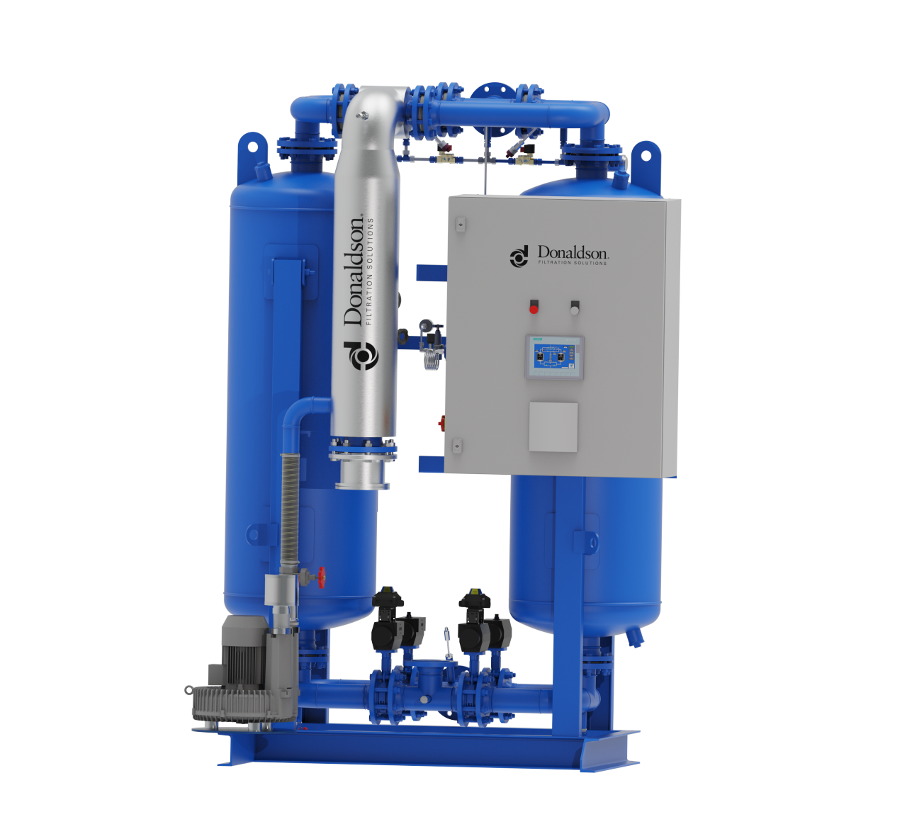 El modelo HRE+ presenta un robusto secador de doble torre con calentamiento externo diseñado para sistemas de aire comprimido a gran escala que requieren un secado continuo de gran volumen. Con capacidades de flujo de hasta 8,760 m³/h (5,158 scfm), este secador ayuda a proporcionar puntos de rocío estables incluso durante ciclos de producción exigentes.