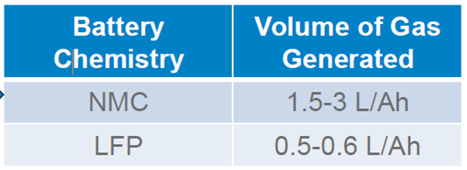 Aumentar el contenido de níquel de las baterías de vehículos eléctricos incrementa su densidad energética, lo que es deseable, pero también aumenta la cantidad de gas generado en caso de fuga térmica. Las baterías LFP producen menos gas, pero también tienen menor densidad energética.