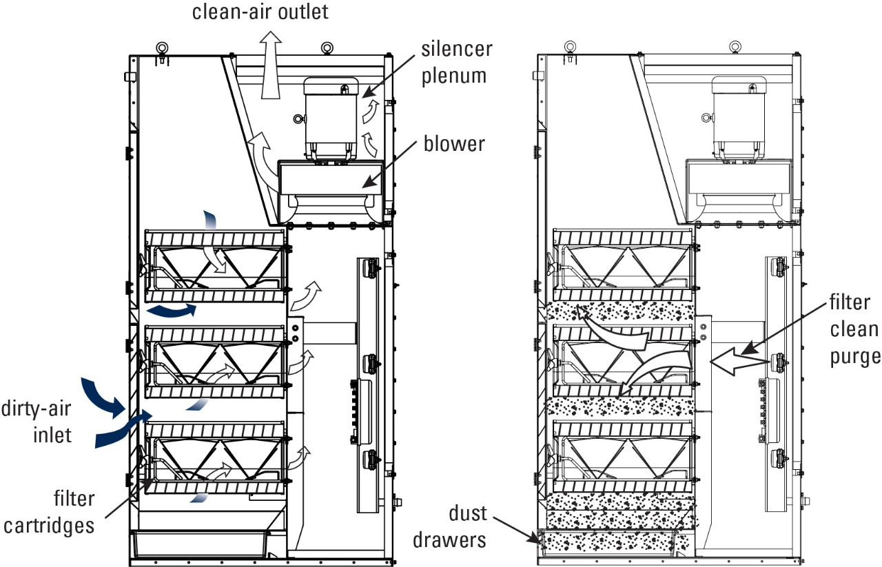 Los sistemas sobrecargados y los filtros cegados son problemas habituales. Esto ocurre cuando el colector de polvo no puede manejar la carga de polvo, lo que provoca el cegamiento del filtro y la reducción del flujo de aire. Inspeccione la tolva del colector para verificar si hay acumulación y asegúrese de que la descarga funcione correctamente. Verifique si hay fugas alrededor de los sellos de la tolva y en los puntos de descarga, ya que pueden introducir polvo en el sistema.