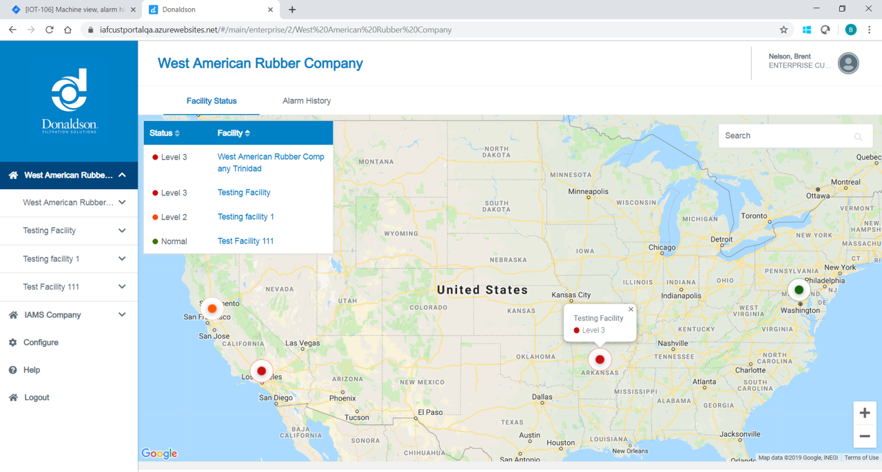 En la solución conectada de Donaldson, los datos del captador de polvo se envían a un servidor remoto seguro (la nube), se convierten en inteligencia procesable y se envían de vuelta al personal responsable de la administración de las instalaciones por correo electrónico, mensajes de texto y un tablero. Para empresas más grandes con múltiples ubicaciones, el personal de mantenimiento puede vigilar el estado de las máquinas conectadas (en este caso, captadores de polvo) en todo su sistema.