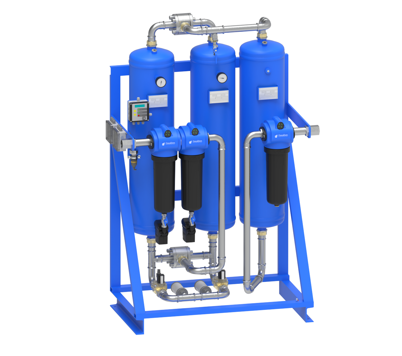 - Purificazione a quattro stadi: prefiltrazione a due stadi, essiccatore ad adsorbimento, adsorbitore a carbone attivo, post-filtro