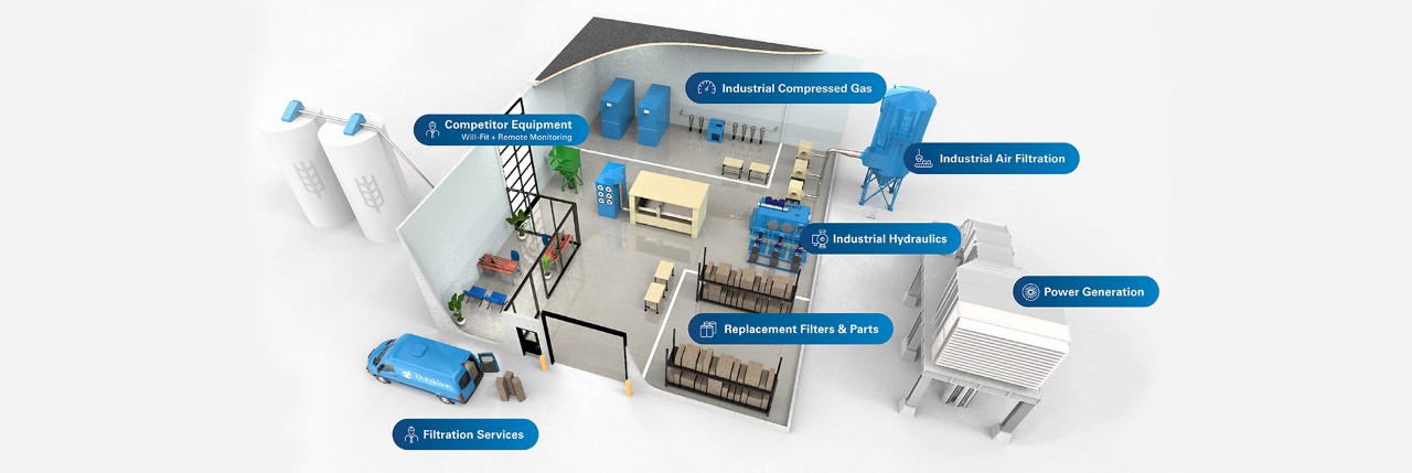 Offriamo competenze certificate in loco per il monitoraggio, la gestione e la manutenzione di apparecchiature di qualsiasi marca, tra cui: Riparazione di depuratori di polveri, verifiche di sistemi ad aria compressa, manutenzione di sistemi idraulici e sostituzione di filtri per turbine a gas.