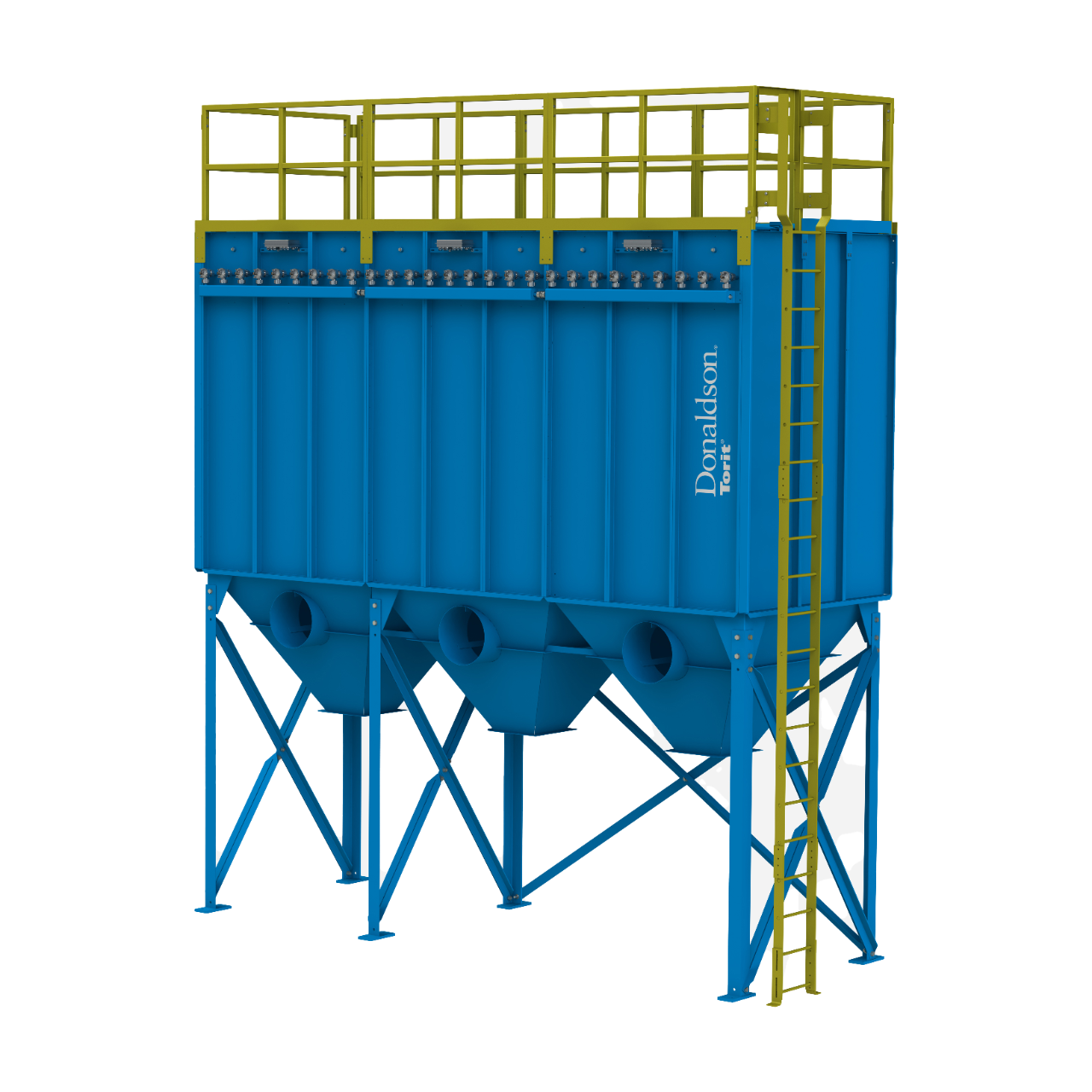Modułowa stacja filtrów workowych ma wlot leja, który został zaprojektowany z użyciem komputerowej analizy przepływu powietrza w celu zapewnienia maksymalnej wydajności. Kiedy zanieczyszczone powietrze dostaje się do wlotu, uderza w deflektor na końcu wlotu, co powoduje, że cięższe cząstki spadają bezpośrednio do leja. Taka konstrukcja zmniejsza ilość pyłu, który wchodzi w kontakt z workami, zmniejszając w ten sposób ścieranie worków i zapewniając zmniejszony spadek ciśnienia i dłuższą żywotność worka.