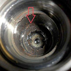 Износ форсунки из-за воды в топливе.